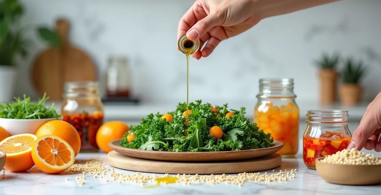Think of it as a pre-digestion step that happens on your cutting board. This technique is why a simple kale salad massaged with a lemon-tahini dressing is infinitely more delicious and digestible than raw, untreated kale. The acid not only mellows the bitterness but also brightens the overall flavor profile, turning a potentially unpleasant experience into a vibrant and satisfying one. Mastering this simple acid-base balance is a foundational skill for making gut-healthy foods genuinely crave-able.