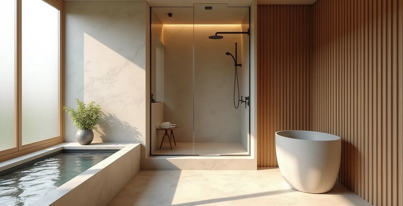 - True spa luxury in a small space comes from sensory engineering—manipulating light, water, and sound—not just surface-level decoration.